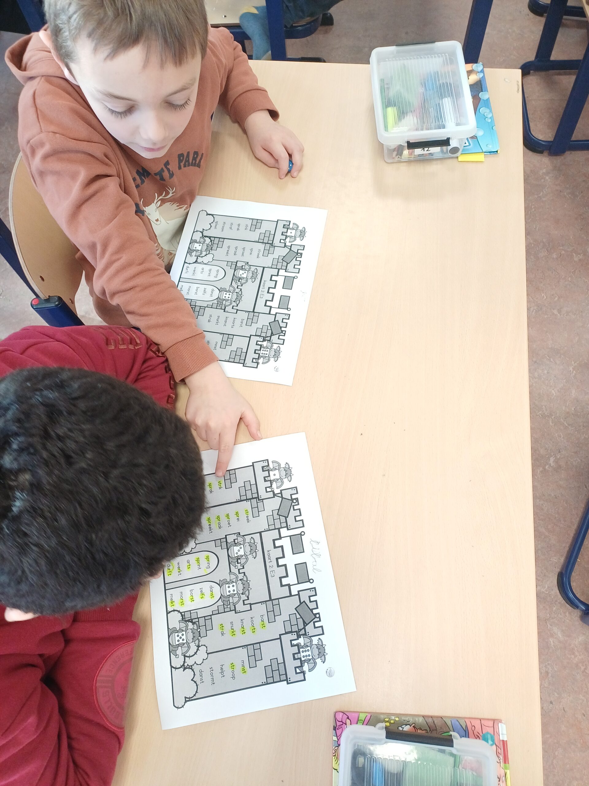 Daarnaast zijn we ook gestart met dobbelsteenlezen per twee alsook met de bibboxen. Dit laatste zijn leesboekjes op het niveau van elk kind. Is het boekje uitgelezen, volgen er vraagjes… Super goed gewerkt! Volgende week gaan we hiermee verder in thema carnaval!