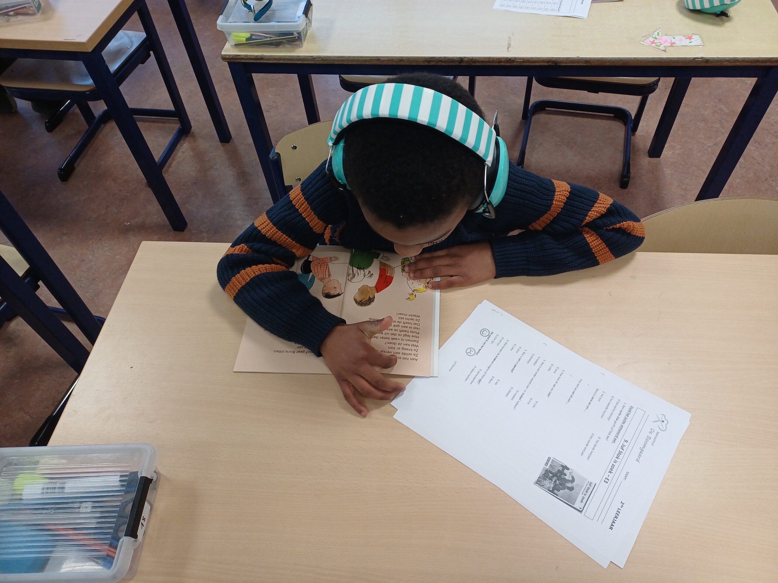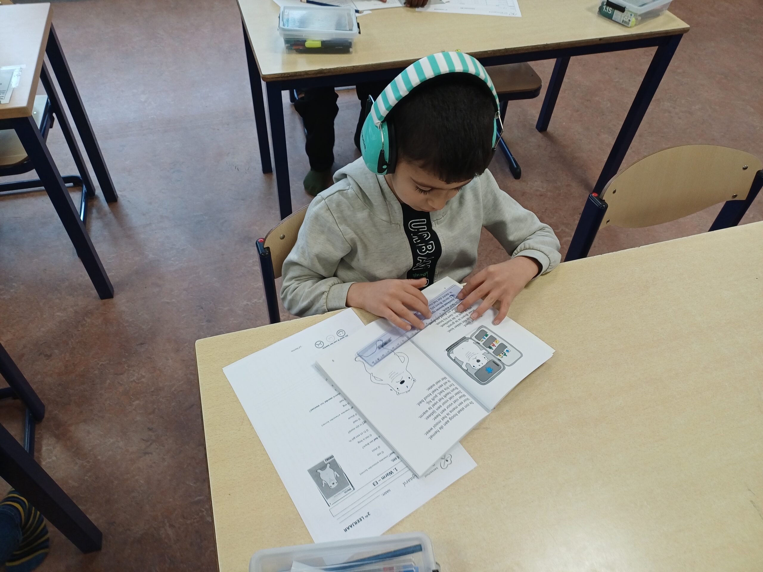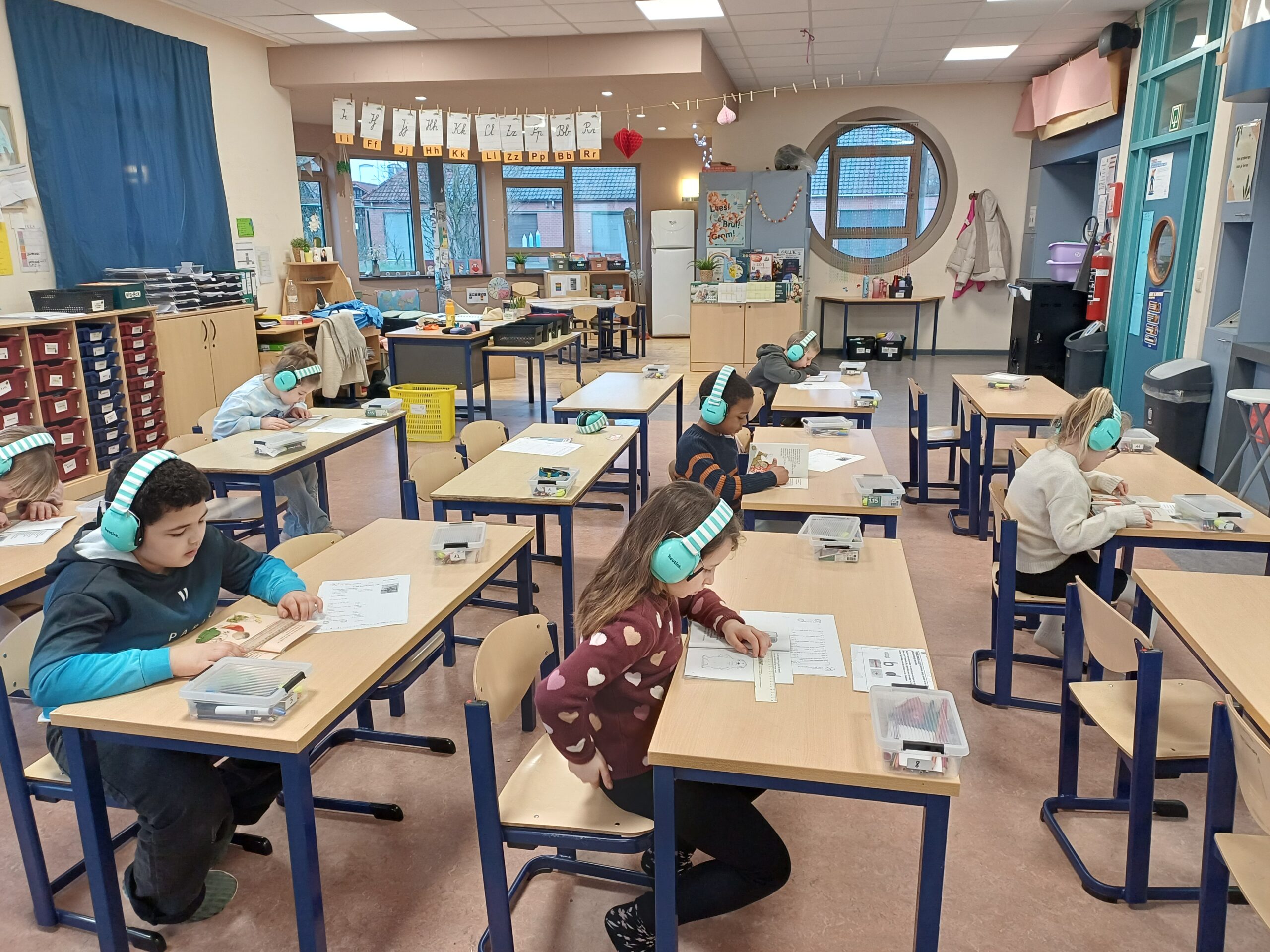 Op allerlei manieren oefenen we het technisch lezen: samen met de klas, alleen, met twee, in boekjes, via leesrijtjes,…