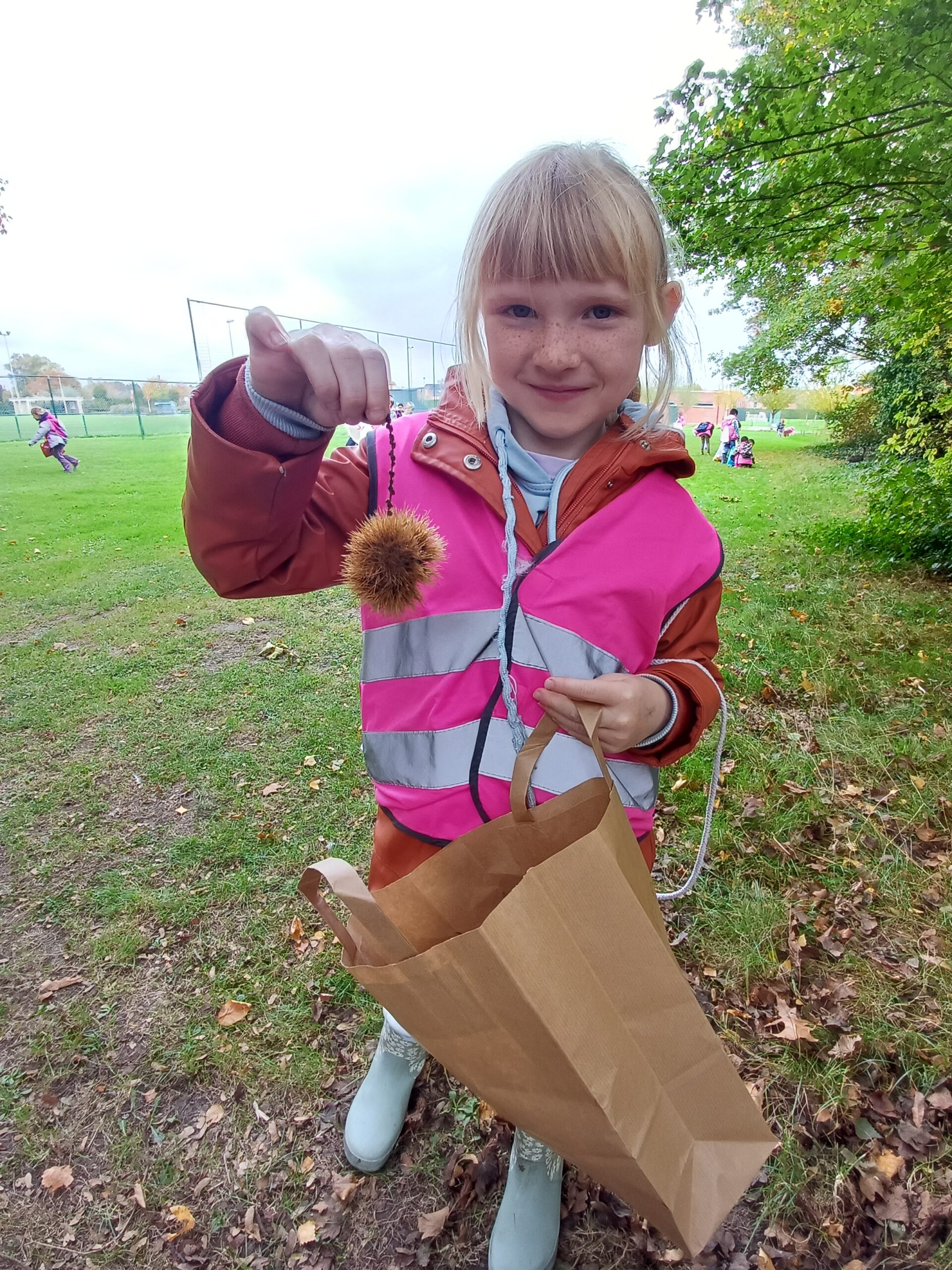 Afgelopen dinsdag trokken we dan ook samen met het 1e leerjaar naar het bos. Het werd een heel leerrijke wandeling waarbij we vanalles ontdekten: het verschil tussen een wilde en een tamme kastanje, de verschillende bladeren en vruchten linken met de juiste boom, het verschil tussen de zomereik en de wintereik, …