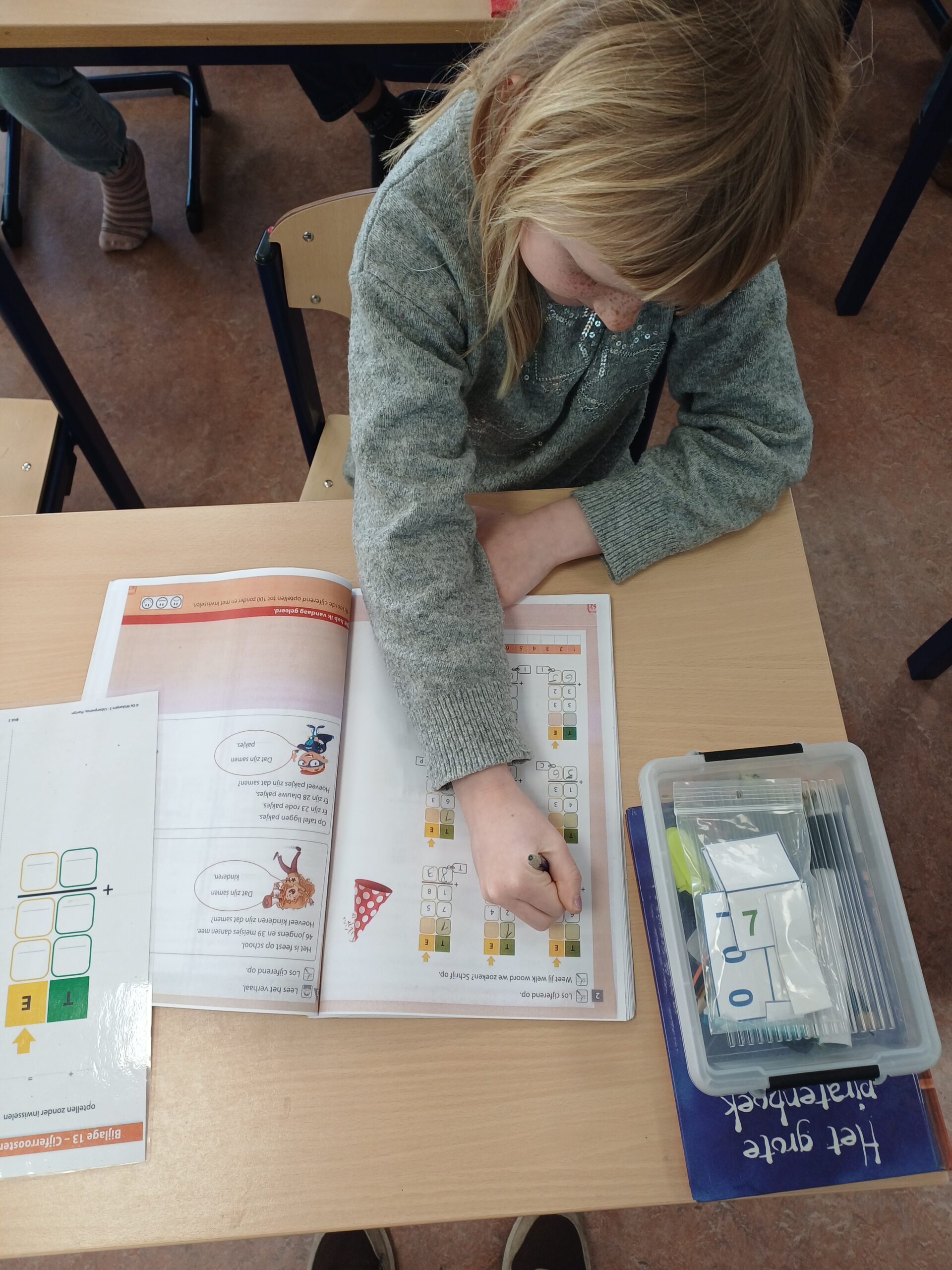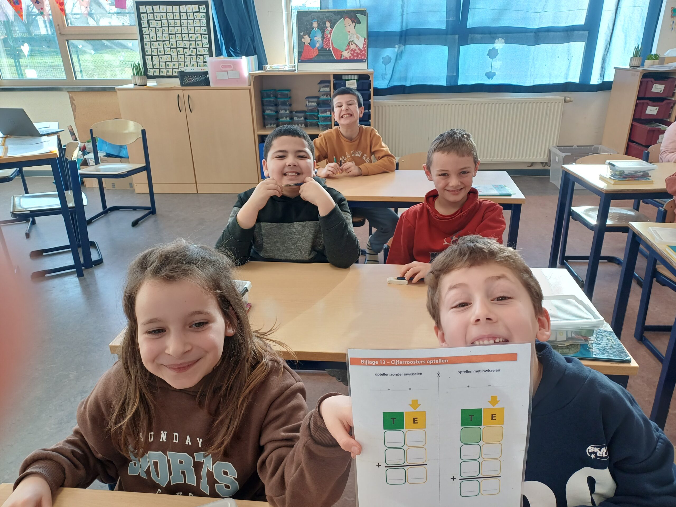 Onze klasspreuk ‘Van proberen kan je leren’ kwam deze week weer goed van pas. Ook al is het soms eens moeilijk, blijven proberen, oefenen en dan lukt het wel. We beten ons vast in het cijferen tot 100, herhaalden het schrijven van langere woorden met eeuw en ieuw, leerden in de lessen taal over tegenstellingen (zoals warm-koud) en over synoniemen (bv. rennen = lopen), daagden onszelf uit om moeilijkere woorden/zinnen te lezen. Daarnaast maakten we in de lessen wereldoriëntatie kennis met verschillende kalenders (jaarkalender, maandkalender, dagkalender,..). Op donderdag gingen we zwemmen en o p vrijdag sloten we de week af met een muzische les in het thema van de winter.